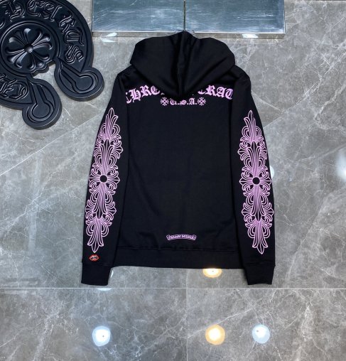Shop the Chrome Hearts Sanskrati Color Purple Shade Black Hoodie, featuring premium heavyweight cotton and bold, artistic purple graphics. A limited-edition streetwear piece with exclusive Chrome Hearts branding.